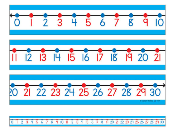 Each number line desk tape set includes 30 pieces that feature numbers from 0 to 30. Color-coded for even and odd numbers, this math resource features a write-on/wipe-away surface to make it easy for students to use over and over!