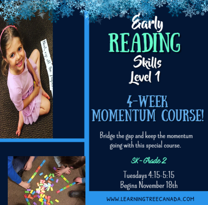 Have your child join us for this 4-week session to build the essential, foundational skills needed to become a confident and successful reader. Sessions will be filled with activities, games, and reading practice to increase your child's fluency and build their confidence. A great way to "try out" the Early Reading Skills or to keep the momentum going strong!