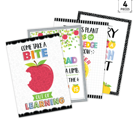 Plant the seeds for a fruitful year by displaying the encouraging advice found in the Apple Time Inspire U 4-Poster Pack. These fresh-looking posters are perfect for display in a school, at home, or anywhere a little inspiration is needed.