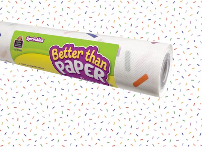 Make school life a little sweeter with this festive Sprinkles Better Than Paper. This lightweight material won’t fade, wrinkle, or tear—making bulletin board setup a snap. Simply cut to your desired size and shape, then hang on walls or bulletin boards.