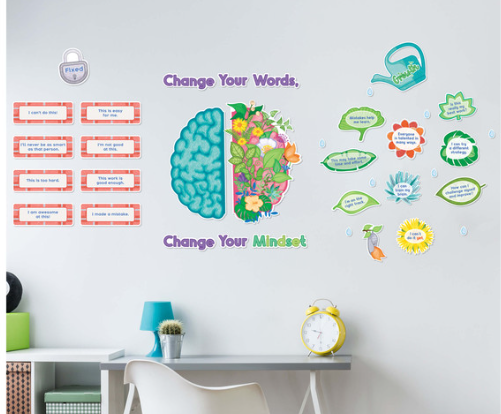 Growth mindset bulletin board sets are a great tool for helping students build social-emotional learning skills and self-esteem by replacing negative thoughts with positive ones.
