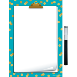 Clingy Thingies® Teal Confetti Note Sheet includes one dry-erase pen that clings to note sheet and features a built-in eraser. Write-on/wipe-off surface. Measures 7" x 10".