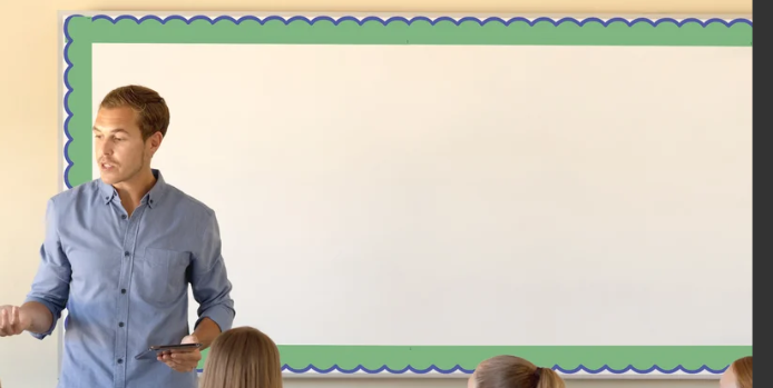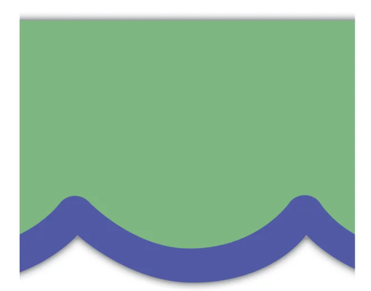 Bring a festive vibe to your classroom with this green-and-blue border trim. Featuring bright green with a blue scalloped edge, this die-cut border trim looks great outlining windows, walls, and bulletin boards.