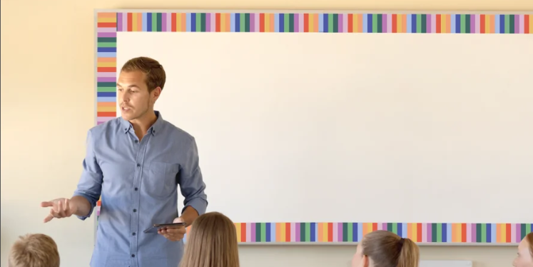 Create a classroom that sparks joy for every student with this brightly-colored border trim. Featuring stripes in modern colors, this straight border trim brings a festive vibe to windows, walls, and bulletin boards.