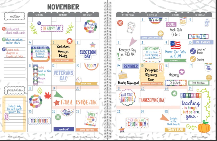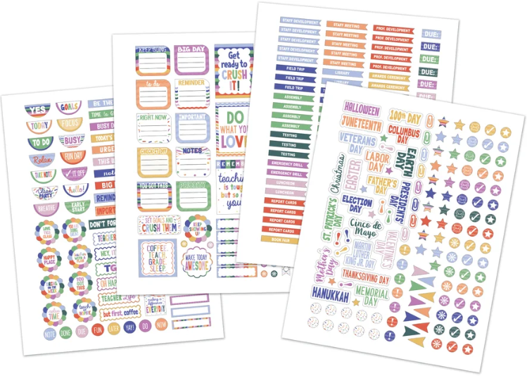 Stay organized this school year with this trendy lesson plan book! Featuring roster sheets and monthly calendar spreads, this lesson plan book is ideal for managing any class. Use for year-long lesson planning, as well as for scheduling appointments, conferences, and events. Made for teachers who love the little details, this lesson plan book is ideal for prioritizing events, adding weekly reminders, and more. Includes 112 pages for planning, plus 340 stickers. Each spiral-bound book measures 8-1/2" x 11".
