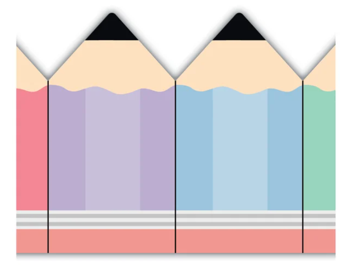 Add artistic flair to your classroom with this colored pencils border trim. Featuring a pastel rainbow of pencils, this die-cut trim brightens up bulletin boards, walls, and doors.