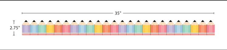 Add artistic flair to your classroom with this colored pencils border trim. Featuring a pastel rainbow of pencils, this die-cut trim brightens up bulletin boards, walls, and doors. Decorate cubbies, desks, and bins. Energize your art corner. Combine with more decor and accents with new school vibes for a trendy, one-of-a-kind classroom where students feel welcome, engaged, and ready to learn. Each pack has 12 pieces (35" x 2-3/4") for a total length of 35 feet of trim.