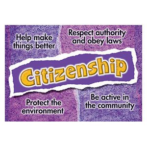 Citizenship. Help make things better. Respect authority and obey laws. Protect the environment. Be active in the community.
