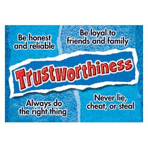 | Trustworthiness. Be honest and reliable. Be loyal to friends and family. Always do the right thing. Never lie, cheat, or steal.