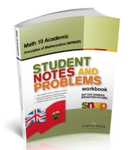 The Student Notes and Problems (SNAP) Workbook for Ontario Mathematics 10, Academic, Principles of Mathematics (MPM2D) is specifically designed to support classroom instruction and provide students with additional examples, practice exercises, and tests.