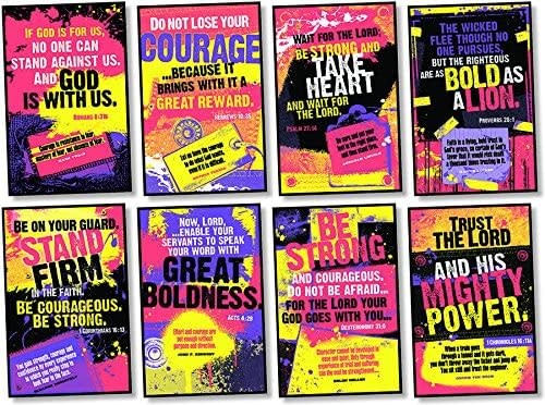 Bold splashes of fluorescent color and quotes from historical figures highlight powerful Bible verses about courage and challenge believers to live with confidence and conviction. Includes eight 11″ x 17″ (27.9 x 43.2 cm) posters. 8 pieces.