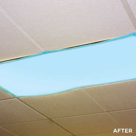 Create a calming and pleasant atmosphere with filters designed to reduce the flicker and glare of fluorescent lights. Heat-resistant fabric filters attach to standard ceiling light fixtures with six sturdy, built-in magnets.