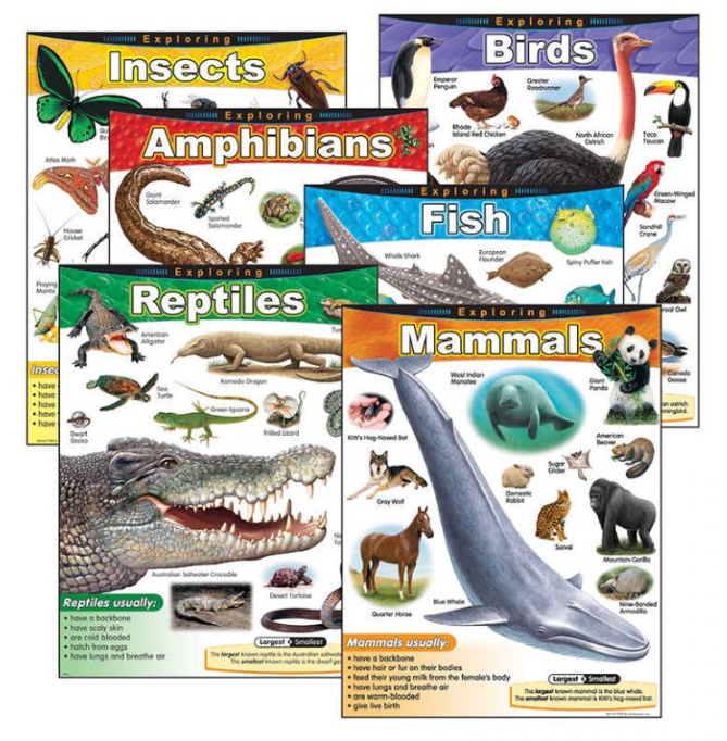 • Classes covered: Birds, Reptiles, Amphibians, Fish, Insects, and Mammals.