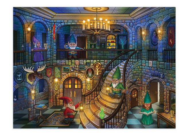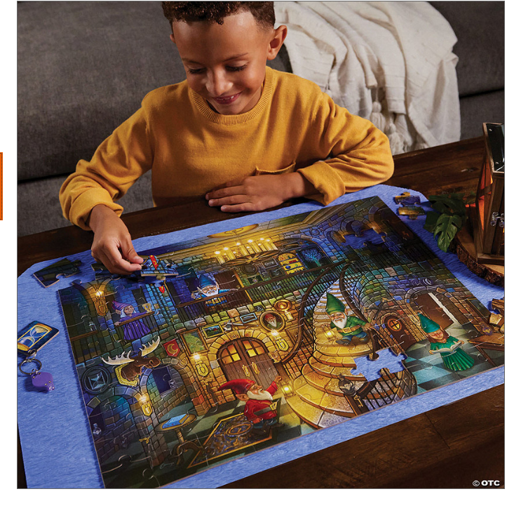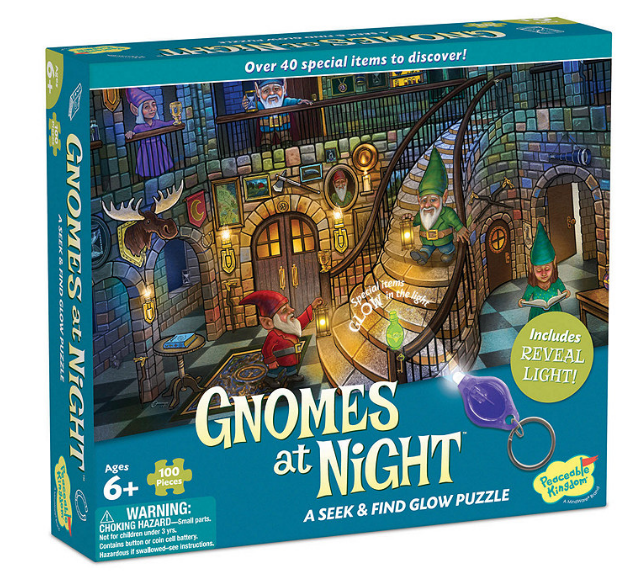 Scour this puzzle for hidden items! Over 40 glow-in-the-dark objects are waiting to be spotted by eagle-eye explorers. Assemble the puzzle to create a detailed scene, then use the included reveal light to find each mystery item!