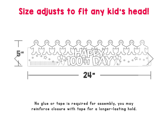 Make the 100th Day of School extra special with these 100th Day Black and White Crowns! A fun and creative classroom activity, these crowns allow students to decorate and proudly wear their own celebratory headpieces. Made from durable card stock, each crown is designed for easy, adjustable closure to fit children of all sizes. Whether using crayons, markers, or paint, kids will love personalizing their crowns while celebrating this exciting milestone. Each pack includes 24 crowns, measuring 5 x 25 inches—perfect for an engaging and memorable 100th-day celebration