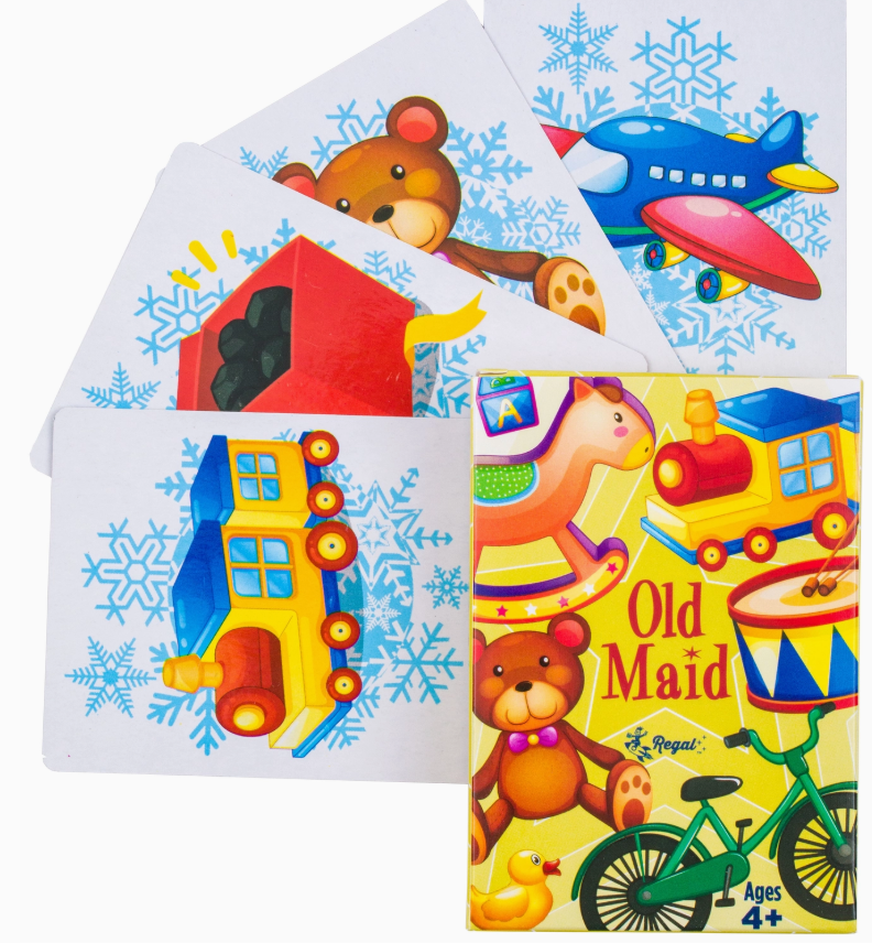 Regal Games Kids Card Games Holiday PDQ. Fun, exciting PDQ Design features all titles. Exciting Holiday design catches the eye. Crazy 8's, Go Fish, Old Maid, Slap Jack, Snowball Fight, and Monster Memory. Great stocking stuffer, Ages 4+