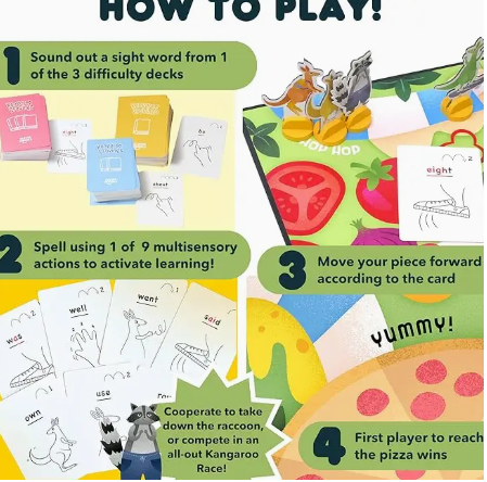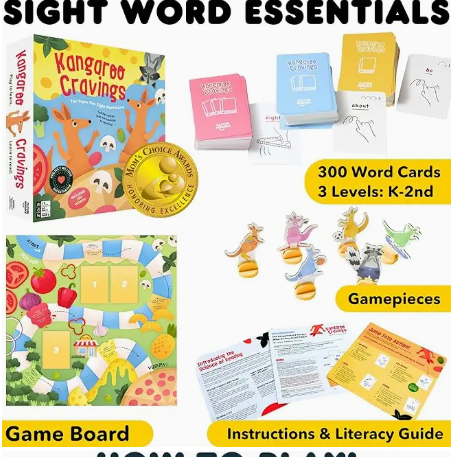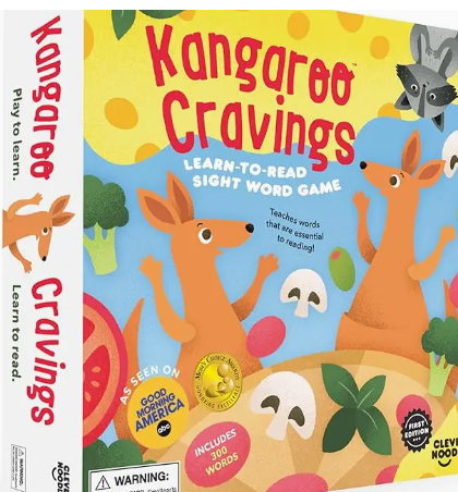 LEARN THE ESSENTIAL WORDS TO READING IN WEEKS - Created by a Mom and her son for parents and their children, Clever Noodle’s Kangaroo Cravings teaches children between pre-kindergarten through 3rd grade 300 high-frequency sight words that are essential to reading. This game will help your child sound out and spell words, coupled with multi-sensory actions to activate learning. No more flash cards!