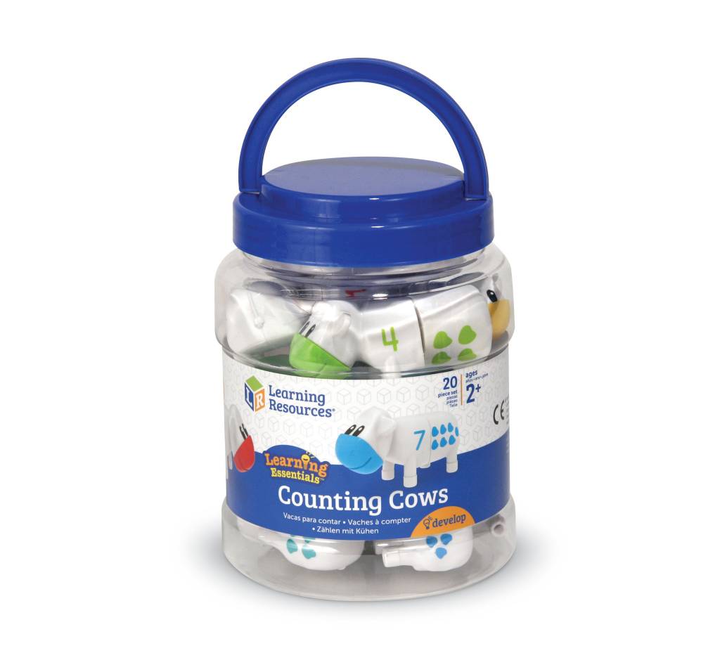 These 20-piece learning toys help children snap math skills into place! They’ll love matching up the cute cows…moms will love that they’re actually learning about numbers, colors, counting, and more. Each cow features a number and corresponding spots for self-checking.