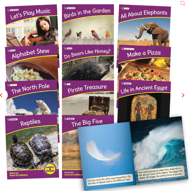 Vowel Sound non-fiction readers introduce a further 20 letter pattern, mainly focusing on alternative vowel sounds. Text uses only decodable regular words (according to the week by week progression) along with 'tricky words'.