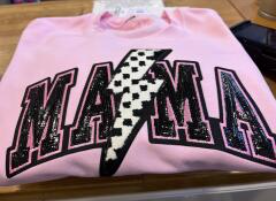 This beautiful pink sweatshirt is made from a cotton/poly blend with a chenille and sequin patch.