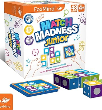 A NEW MATCH MADNESS GAME FOR YOUNGER KIDS: The classic matching game now adapted for ages 4+. The game includes 4 blocks for each player that test your dexterity and observation by turning the blocks to match the puzzle card.