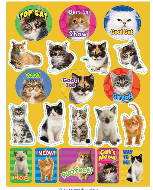 These Motivational Cat-themed stickers are a great way to encourage your child. Each sticker measures 1x1", and each package contains 120 stickers.