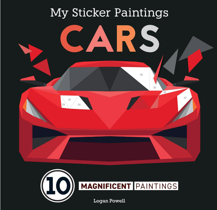 Create stunning works of mosaic art with stickers! This distinctive poly-art paint by sticker book for kids ages 6-10 features a collection of 10 geometric designs of various cars and motorcycles -- from a Formula 1 and a motor cross bike to a stock car, a futuristic car, and more. Using the colored stickers for each car pattern, place them in the appropriate spot according to its numbered section and watch as the geometric shapes transform into beautiful, crystalized designs. Also included are fun facts to learn more about each amazing vehicle! An entertaining, hands-on activity for kids, this sticker painting book offers an excellent opportunity for developing their focus and attention span. Designs are printed on thick, perforated pages that can easily detach to be displayed or gifted once a painting is completed.