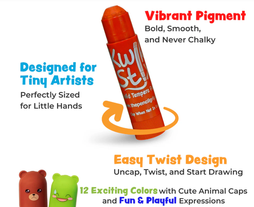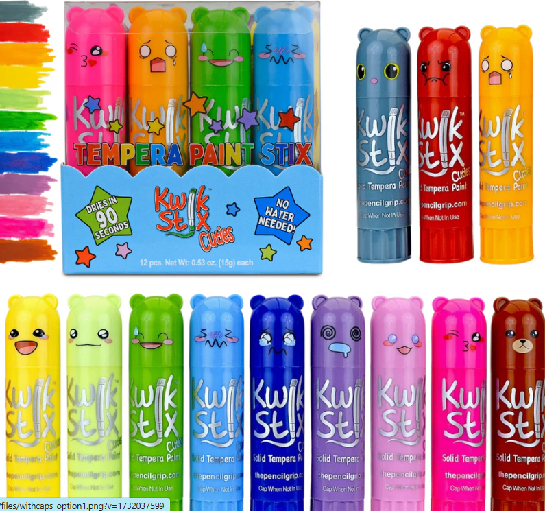 Kawaii-Inspired Designs: Each paint stick features a unique, adorable character that sparks kids’ imaginations and makes art time even more fun and engaging. Encourage artistic exploration and fine motor skills with Kwik Stix—an essential tool for creative kids and a must-have in every craft supply kit!