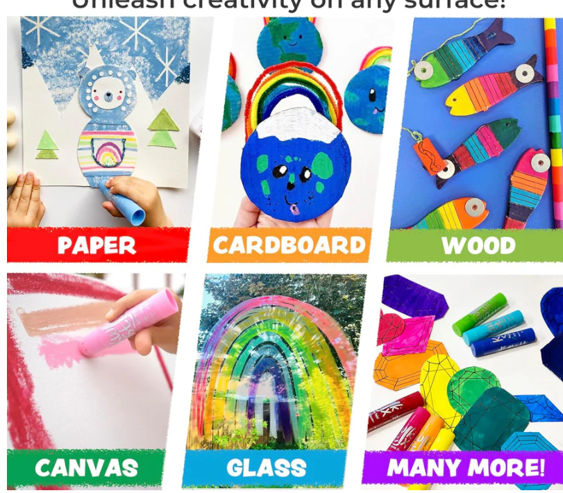 Mess-Free & Quick-Drying: No cups, brushes, or water needed! These vibrant, easy-to-use paint sticks dry in under 90 seconds, keeping creativity clean and stress-free.
