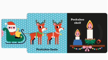 Easy-to-use peekaboo sliders, funny rhyming holiday text, and a surprise mirror ending combine in this stylish and interactive board book for babies and toddlers.