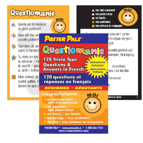 has been added to your shopping cartIt’s a trivia type game • 120 question cards per set, broken down into 5 categories, play each separately or as a whole. • Questions on a common theme for language learners.