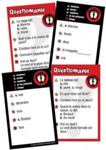 What is it?: It’s a trivia type game • 120 questions per set, broken down into 5 categories, play each separately or as a whole. • Questions on a common theme for language learners. • Question on front of card, answer on reverse • Use for games or activit