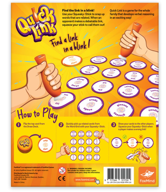 - FAST-PACED WORD PARTY GAME - Think fast! Find logical links between objects and attributes and rapidly grab cards with the squeaky suction sticks to earn points.
