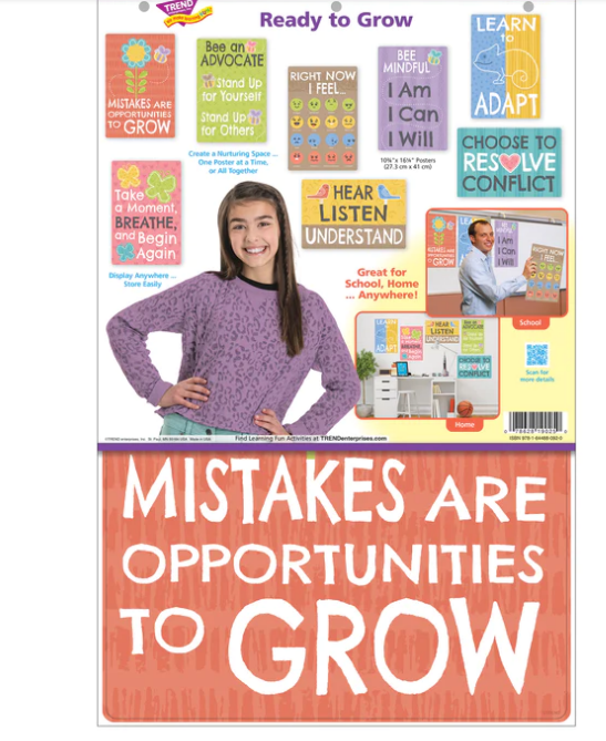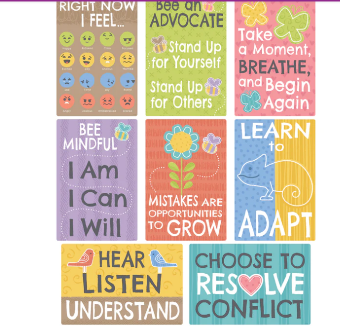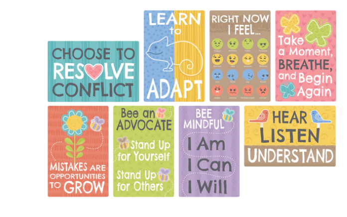 Encourage students to pick a poster to discuss, then talk about ways to put it into practice. These conversations help increase self-awareness and self-advocacy, supporting kids on a path to emotional well-being. Encouraging messages, calming colors, and natural images help make classrooms, homes, offices, libraries, conference rooms, cafeterias, and hallways inviting spaces ready to help kids grow.