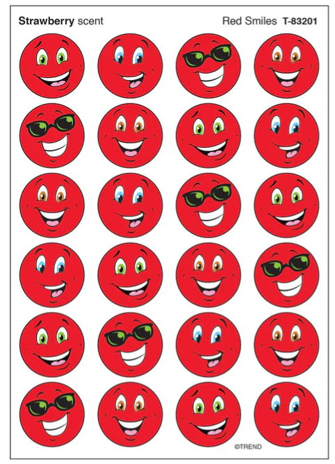 Red Smiles, Strawberry scent Scratch 'n Sniff Stinky Stickers*