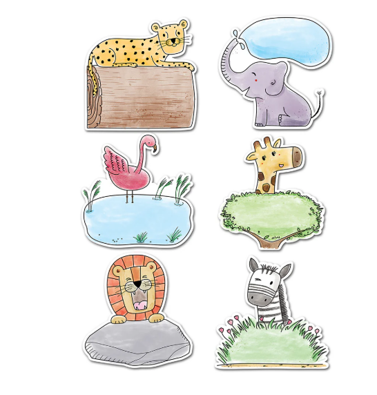 These wildly cute Safari Friends 6" Designer Cut-Outs will add charm to bulletin boards, doors, and any classroom space. These colorful safari animals (cheetah, crocodile, elephant, flamingo, giraffe, meerkat, and zebra) are perfect for any display.