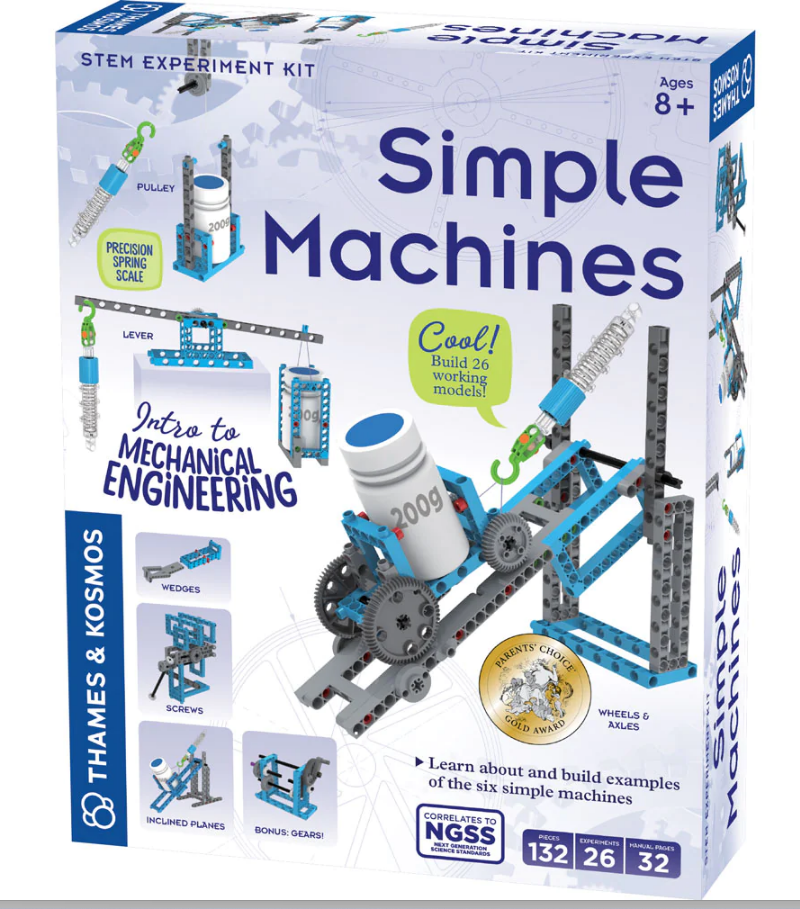Jumpstart your study of mechanical physics by learning all about simple machines and how they’re used to make complex tasks easier to do. Through 26 model-building exercises, you’ll investigate all six classic simple machines — wheels and axles, levers, pulleys, inclined planes, screws, and wedges — as well as gears. Start off with simple models to guarantee a firm understanding of the basic principles at play, and then move onto larger, more complex models to push the machines harder and see how they can work together. Also included is a specially designed spring scale so that you can measure how the machines change the direction and magnitude of forces, making work easier to do. With this durable, modular construction system, you can see how the same basic elements combine in different ways to form each machine. The models can be assembled and disassembled again and again; combine the pieces to create your own configurations, limited only by your imagination! In addition to the invaluable hands-on experience you’ll get from model building, the 32-page, full-color manual also dives into examples of simple machines in action in everyday life. The seesaw at the playground, the wheelbarrow in your backyard, the flagpole in front of your school — all of these are examples of simple machines in the real world! So start building, investigating, and experimenting to discover how physics is all around us!