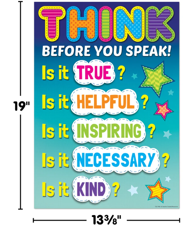 Brighten any classroom as you inspire and motivate students with this brightly-colored poster, encouraging students to think before they speak. Poster measures 13⅜" x 19".