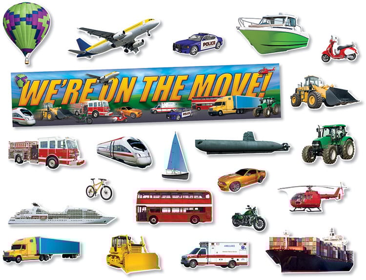 It’s a busy world and people are constantly on the move, using a huge variety of vehicles to travel from here to there! Familiarize students with common means of transportation using these photographic representations of passenger and cargo vehicles. Includes a 39½” x 8″ (100.3 x 20.3 cm) banner and die-cut pieces ranging in size from 4″ (10.2 cm) to 16″ (40.6 cm). 22 pieces.
