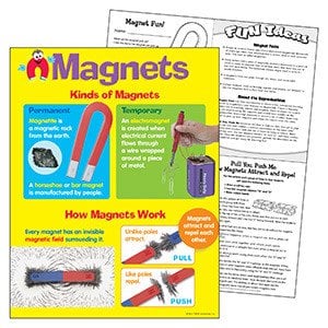 Chart shows the different types of magnets and explains in basic terms how magnets work. Durable. Extra Value: Reproducibles on back. 17" x 22".