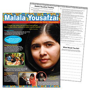 Meet Malala Yousafzai, the young Pakistani crusader for girls’ education rights. Extra Value: timeline and activity reproducibles on back and online. Durable. 17" x 22".