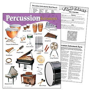 Sharp, full-color photos illustrate a variety of percussion instruments from castanets to harpsichords. Use alone or pair with TREND’s Wind Instruments and String Instruments charts. Durable. Extra Value: Reproducibles on back. 17" x 22".