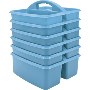 These plastic storage caddies are handy totes for your markers, calculators, timers, manipulatives, and many more small items that you want to keep within reach. Made from durable plastic and include divided compartments for easy organizing.