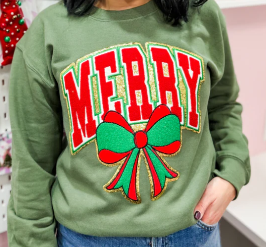 What a special way to celebrate this festive time of the year! This beautiful sweatshirt is made from a cotton/poly blend with a chenille patch.