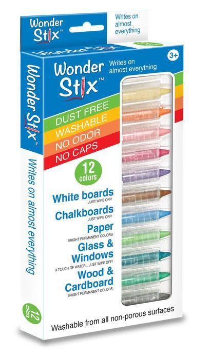 This pack comes with 12 vibrant pastel colors. They are washable, dust free, and odorless. They are also cap free and won’t dry out. The creative options are endless with Wonder Stix!