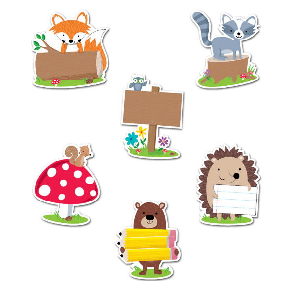 These cute and furry Woodland Friends 6" Cut-Outs will add charm to bulletin boards, doors, and any classroom space. These colorful woodland animals (owl, fox, hedgehog, squirrel, bear, and raccoon) are perfect for use in a variety of classroom displays.