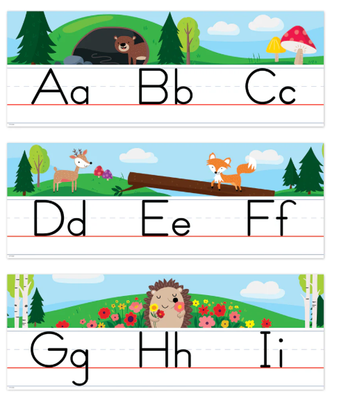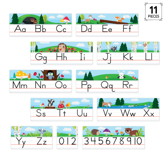 WOODLAND ANIMALS THEME – The charming woodland animals and nature scenes depicted on this alphabet line will add a touch of the great outdoors to any learning environment.