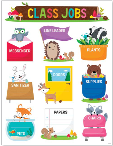 This NEW Class Jobs chart is part of the adorable Woodland Friends Classrooms theme. Featuring an array of kids' favourite forest animals, it's a great way to post class jobs while creating a warm, welcoming environment. Measures 17" x 22"