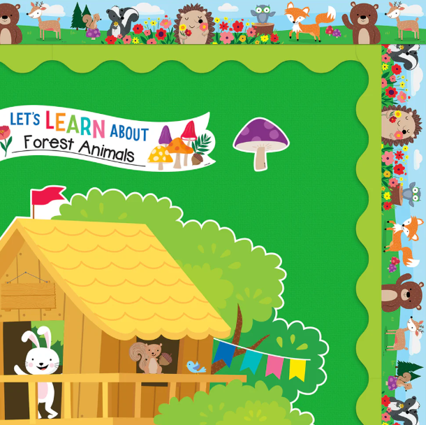 Bring the great outdoors to your bulletin board displays with this Woodland Friends EZ Border. The border features a scene in which adorable forest animals are enjoying a beautiful day. This border will bring a breath of fresh air to any space. Perfect for use on bulletin boards in a wide variety of classroom, office, and school settings.