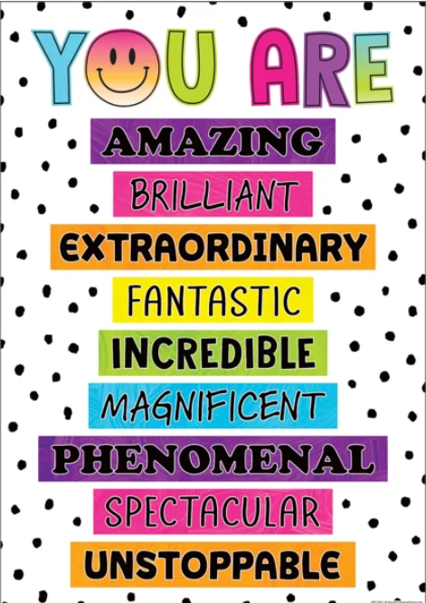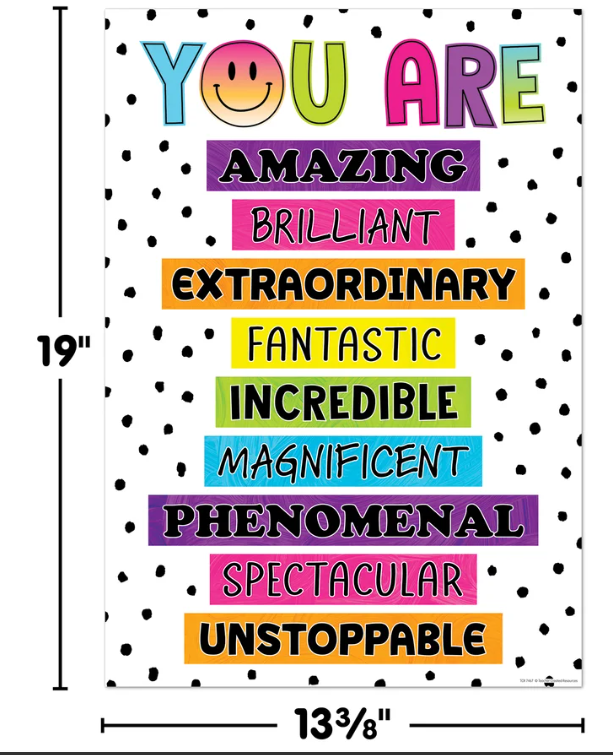 Brighten your classroom as you build self-esteem and remind students of their worth with this colorful positive poster. Poster measures 13⅜" x 19".